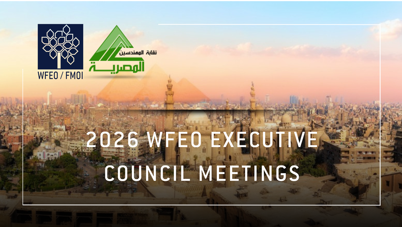 The World Federation of Engineering Organizations (WFEO) has selected the bid submitted by the Egyptian Syndicate of Engineers (ESE) to host the 2026 WFEO Executive Council (ExC) Meetings (Fall meetings) in Cairo. The decision was made following the WFEO Executive Board meeting held on January 12, 2026. The selection reflects confidence in ESE’s institutional capacity and commitment to advancing engineering leadership in support of sustainable development.